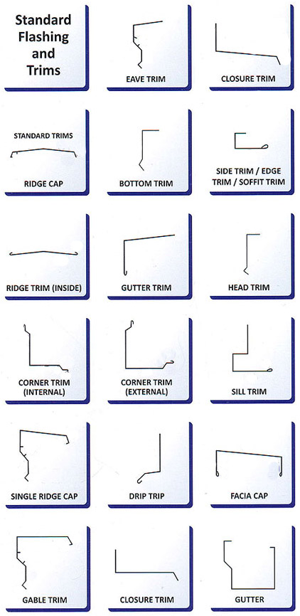Eave gutters, curved eaves, wall flashings and trims are produced from the same material (Base metal, thickness, substrate coating, paint finish and color) as the wall panels of the building. Ridge panels and roof panel related accessories are produced from the same material as roof panels.